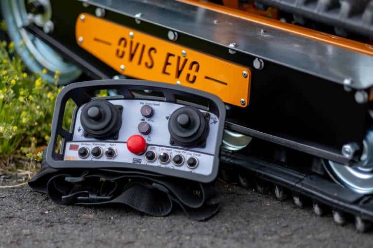 Daljinski upravljač se od standardnog modela Ovis razlikuje samo po tome što ima tri dodatna dugmeta/prekidača. Upravljanje mašinom je jednostavno kao i do sada.